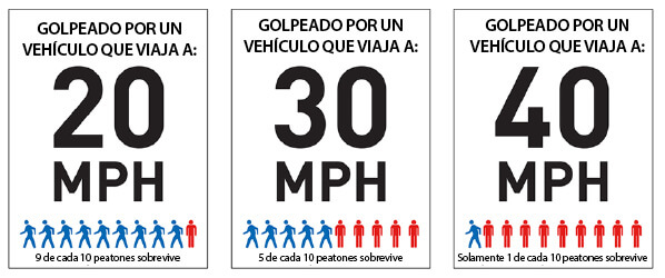 - Revise la calle en busca de ruedas y pies: sea especialmente cuidadoso para detectar gente caminando y en bicicleta antes de dar vuelta en intersecciones y en calzadas.