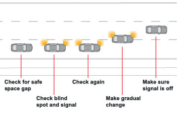 Ask your teen to list valid reasons to change lanes. Good answers include: to make a turn, to avoid an obstacle, to exit the road, to park, or to pass another vehicle.