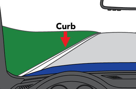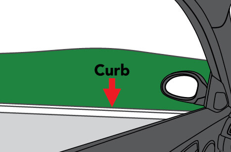 - Teach your teen to align the front bumper between 6–12 inches from a pavement curb (or line). Have them drive slowly straight toward the curb. Coach them to stop when the curb appears under the driver side mirror.