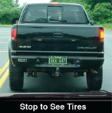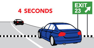 - Start counting when the rear bumper of the vehicle in front of you passes a fixed object like a sign or telephone pole.